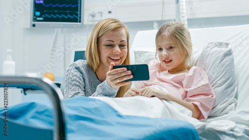 Cute Little Girl Lies On A Bed In The Childrens Hospital Her