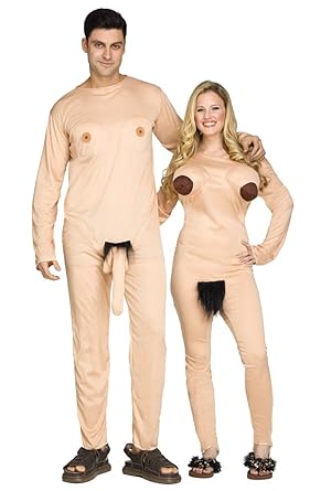 Fun World Funny Nudist Couple Jumpsuits Adult Halloween Costume Childrens Costume Beige Standard
