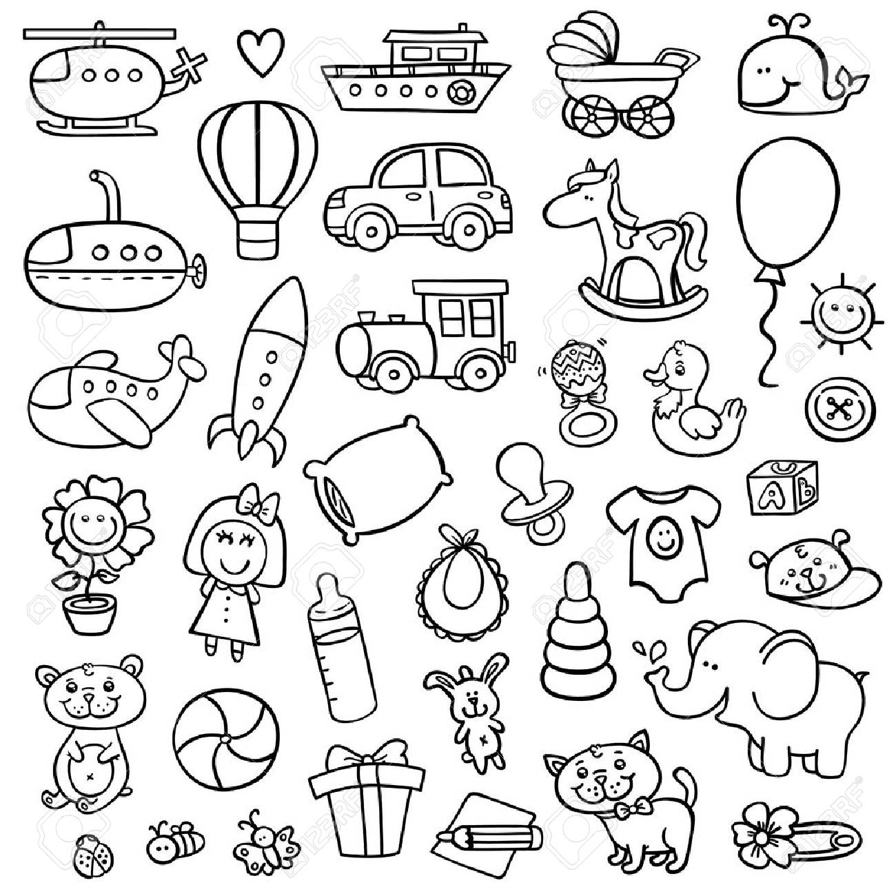 Funny Baby Toys Doodle Set Vector Collection Of Hand Drawn