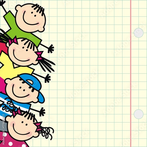 Happy Kids And Square Paper At The Background Funny